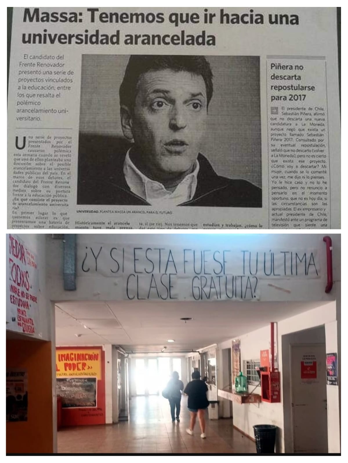 Pagar es otra cosa: eso sería arancelamiento y es otra discusión que habría que dar, si consideramos que dentro de la élite social que asiste a las universidades, la inmensa mayoría es de clase media-alta que a su vez llegó a la universidad pública y gratuita luego de haber transitado -en su mayoría- por escuelas privadas de nivel primario y secundario.