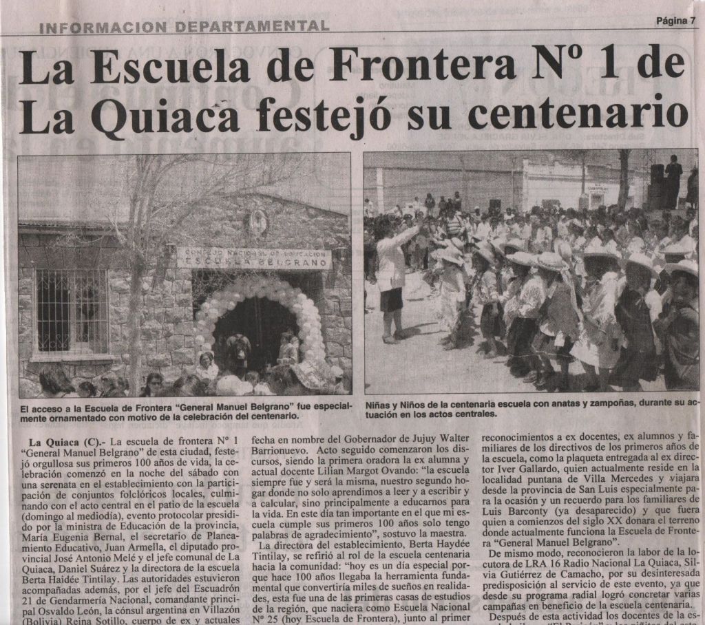 Siempre se lo vio en las aulas, enseñando junto con los docentes o trabajando en la ampliación de la escuela, sin descanso, fue el motor que llevó a la Escuela de Frontera N° 1 de la Quiaca a aumentar su matrícula y a tener condiciones educativas que pronto estimuló a que incluso las autoridades del pueblo quisieran inscribir sus hijos allí.
